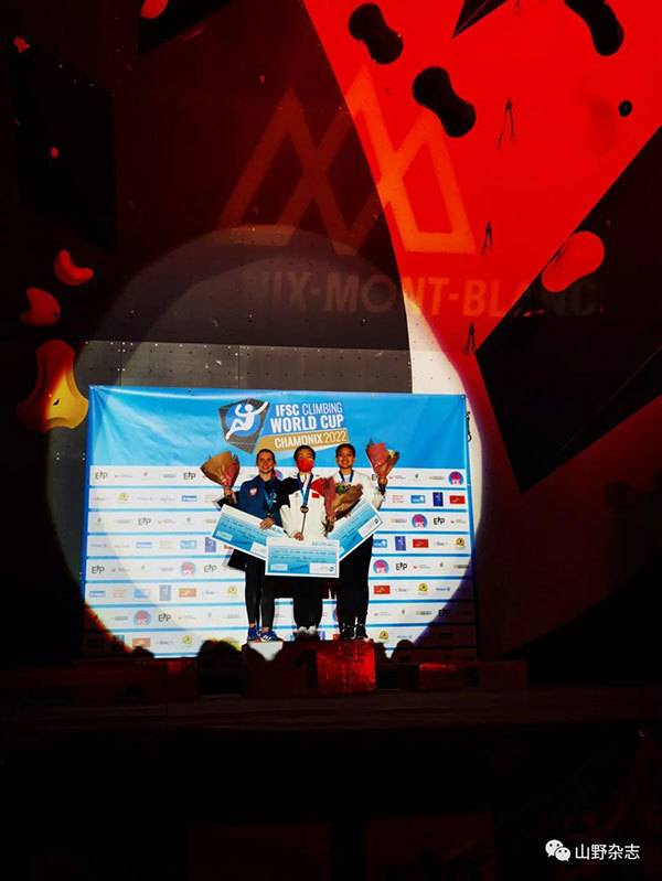 在颁奖仪式上,受国际攀联主席马尔科(Marco)邀请,国际奥委会委员、中国首枚冬奥会速滑金牌获得者张虹作为颁奖嘉宾为两位中国运动员颁发金牌。
